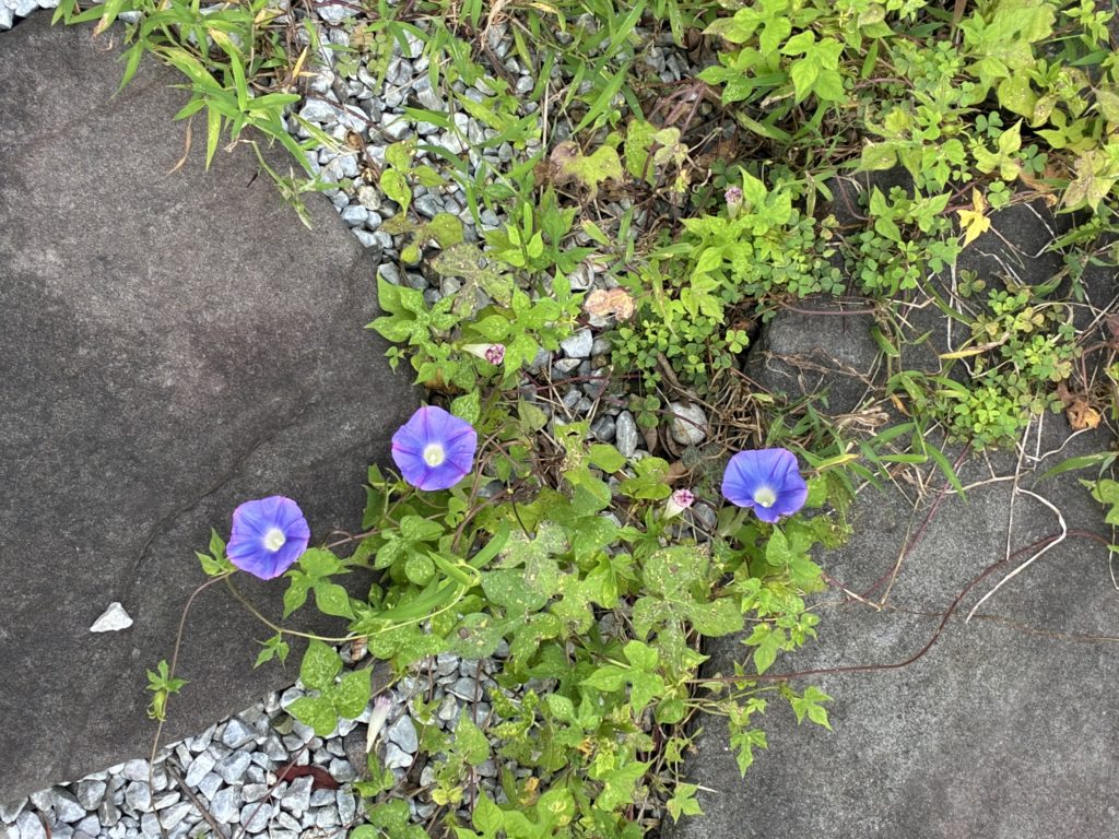 写真は野原からとってきて庭に植えた昼顔、今年もたくさん花を付けました。